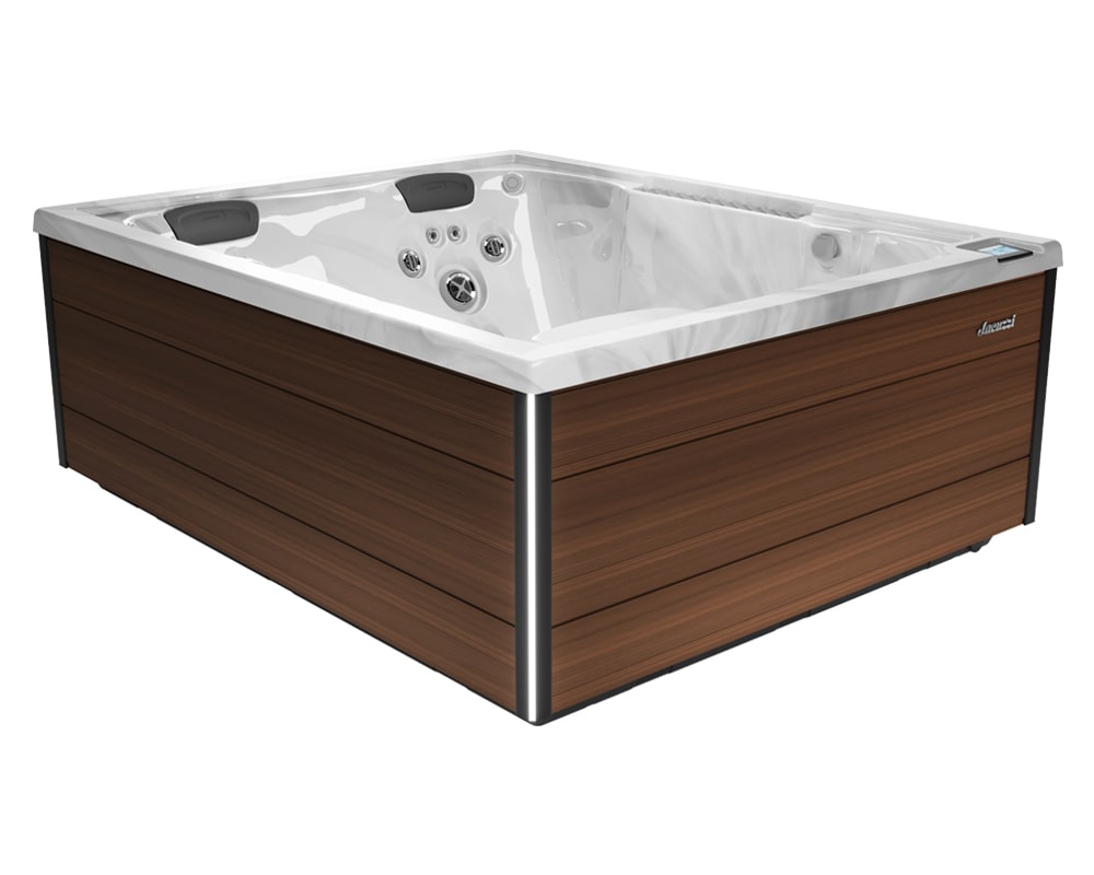 "The J-404L is perfect for my smaller patio. The lounge seat is surprisingly deep—I’m 6’ tall and I don't float out. The high back design blocks the wind nicely, though it does make the tub look a bit bulky from the side. Still, the neck massage is the best I've ever felt."