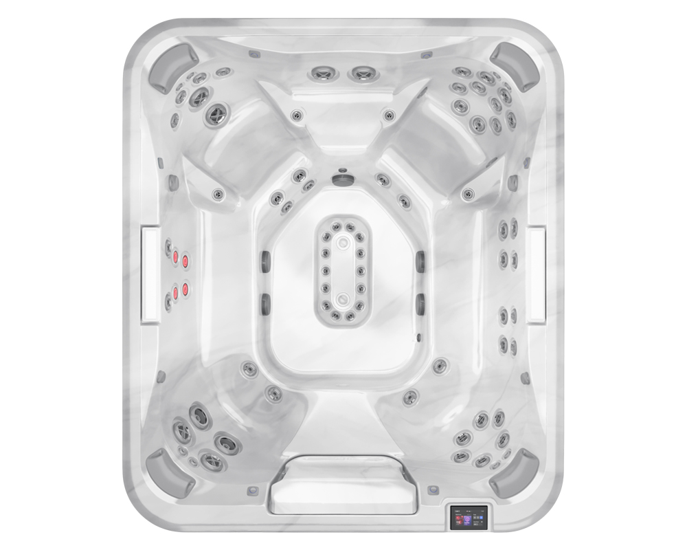 "We needed the J509 for the extra seating. It’s huge! Even with 6 people, it doesn't feel like you're knocking knees. The waterfall feature is very soothing, though it can be a bit splashy if the jets are on high. We use it every single night without fail."